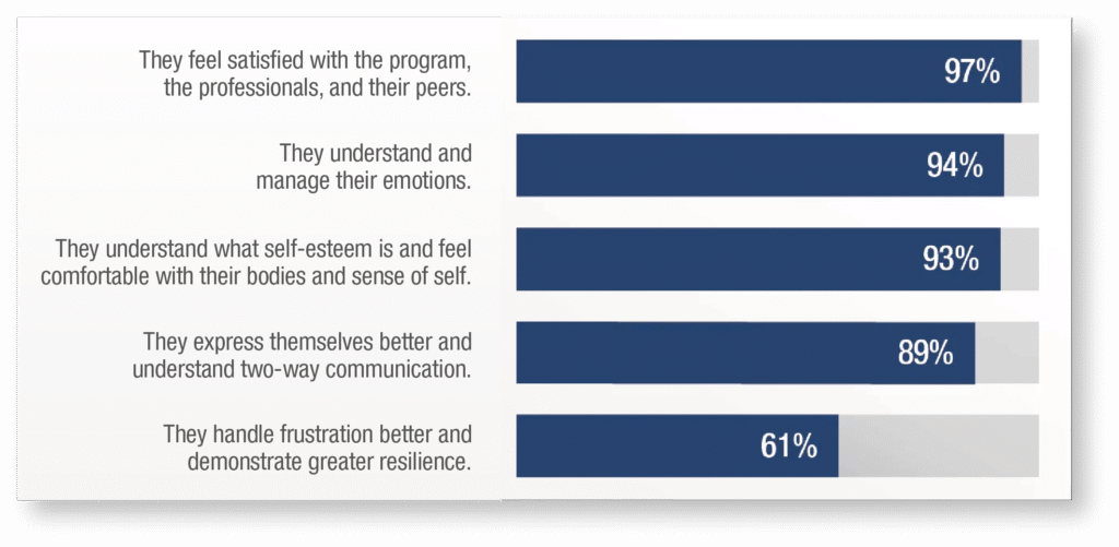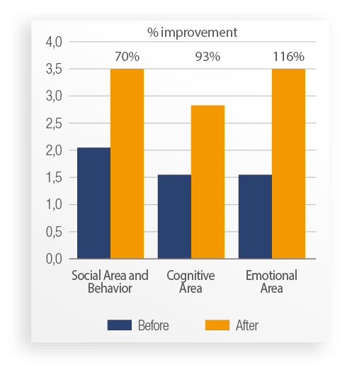 This is the specialty that shows the greatest progress: children follow instructions more readily and are more cooperative, empathetic and sociable. Their attention, memory and planning skills have increased, as has their ability to identify, express and regulate emotions.